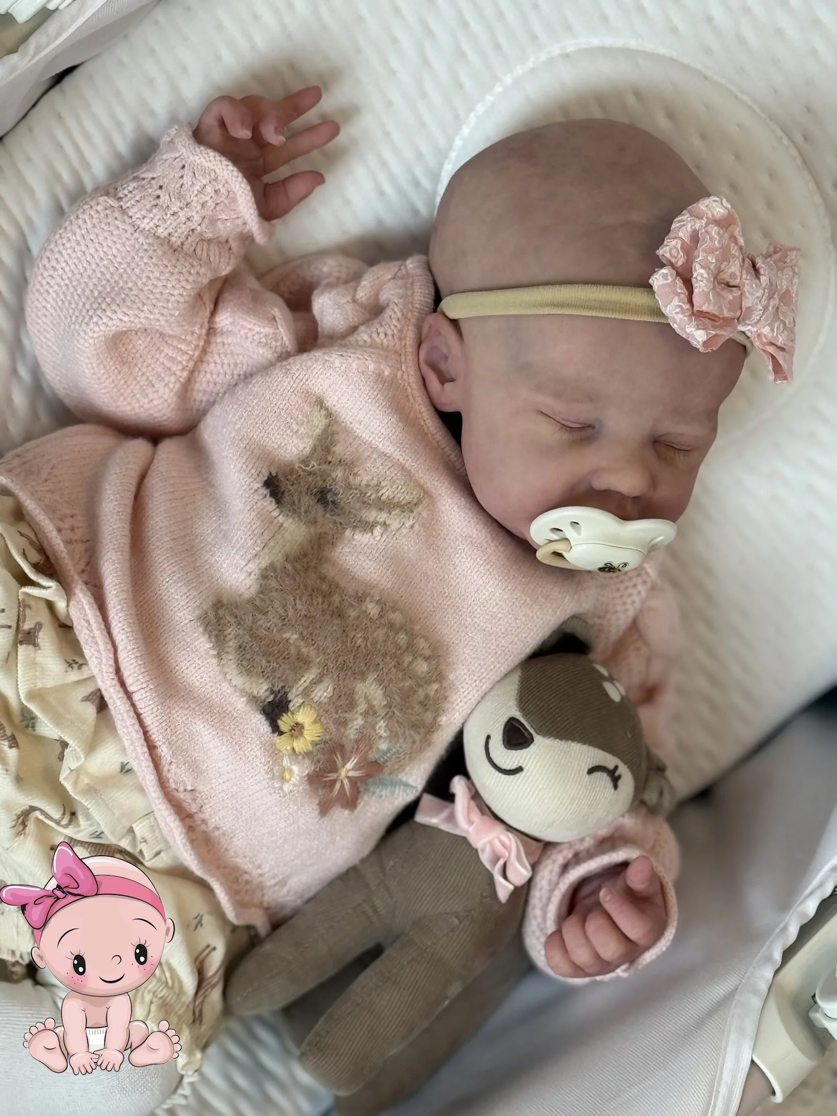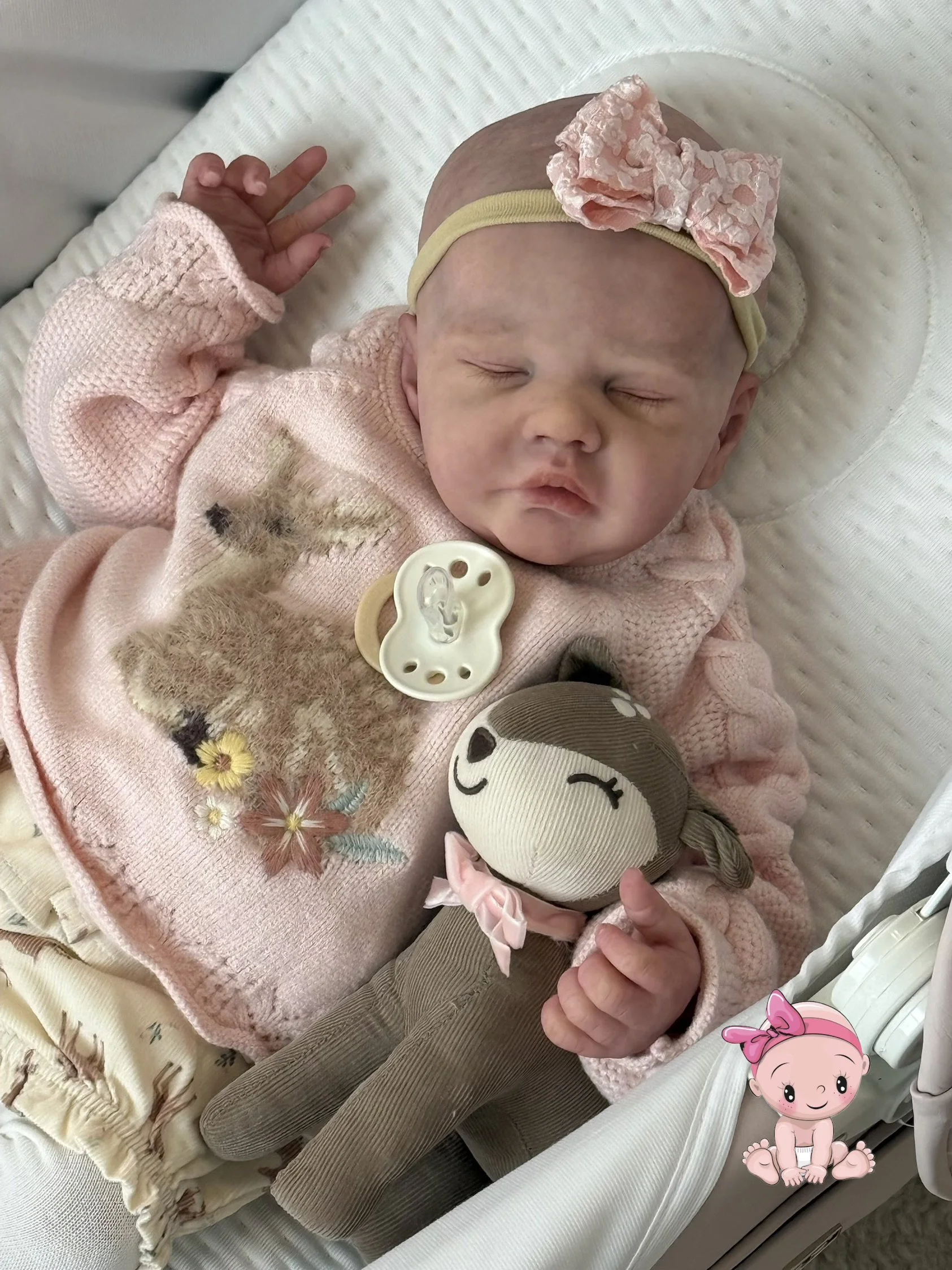 She was all hand painted and brought to life by me. I have rooted her hair one by one with the softest mohair. She will come home to her new mommy with a magical box opening consisting of handmade clothing made especially for her by me. Also included with be her embroidered blanket, pink bow diaper, pacifier, Coa, care instructions, and so much more!!
